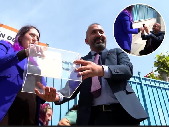 Naime, uz improvizovani glasački listić sa zajedničkom fotografijom, Mehmet je zaprosio devojku. Na glasačkom listiću pisalo je: "Hoćeš li da se udaš za mene?" Na prvi pogled zbunjenu Gizem Esin dok je izlazila sa glasačkog mesta, sačekao je dečko sa još jednim listićem i pečatom. Ubrzo je shvatila u čemu je reč i bez razmišljanja rekla "da", lupila pečat na listić i ubacila u improvizovanu glasačku kutiju.  Posle ubacivanja listića momak je kleknuo i devojci poklonio verenički prsten. Par su podržali pristuni uz ovacije i aplauz.