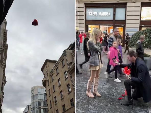 U jednom trenutku, momak pušta crveni balon u obliku srca i svi pogledi, pa i njegove devojke, uprti su u balon koji leti. Sledeći korak je bio unapred isplaniran. Momak je brzo kleknuo i iz buketa cveća izvukao kutijicu sa prstenom. Kada se devojka okrenula, imala je šta da vidi. Usledilo je oduševljenje i aplauz prolaznika koji su zastali na tren da vide prelepi prizor. Bilo je i osmeha, suza radosnica, ali i lepih komentara. Ispod videa, ljudi su imali samo reči hvale i čestitali su mladom paru.