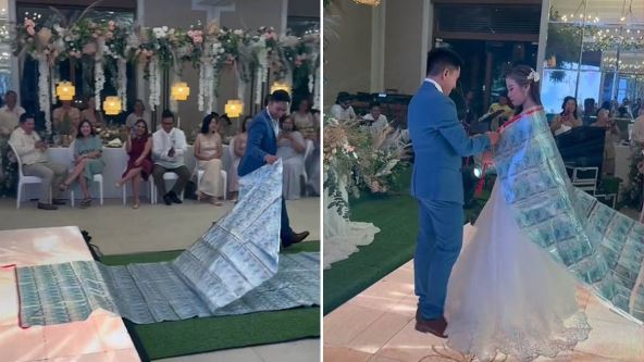 Mladoženja je ispred mlade prostrao poseban tepih, sitan vez od novčanica. Vredi milion filipinskih pesosa, što iznosi oko 22.000 evra. S obzirom na to da je mladoženja hteo da pokloni nešto orginalno i zaseni sve, nema sumnje da je uspeo - makar ako je suditi po reakcijama i žena i muškaraca.