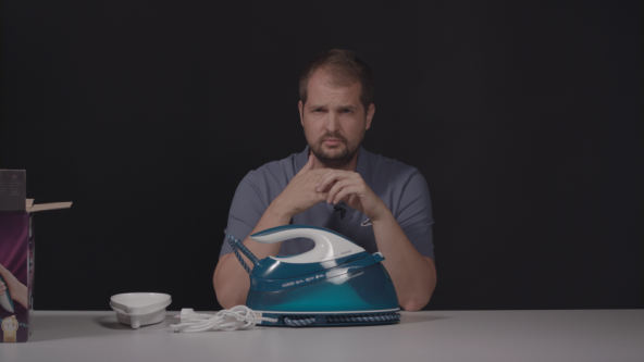 Čišćenje se obavlja veoma jednostavno – postavljanjem pegle na posebnu plastičnu posudu (stiže sa stanicom) i pritiskom na pomenuto dugme.