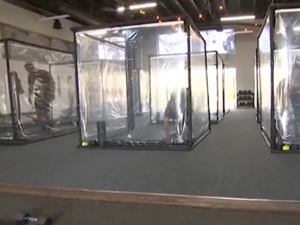 On je odredio zasebne kutke za svakog ko vežba u teretani, a te odvojene boksove napravio je od plastičnih zavesa koje se koriste za tuširanje.