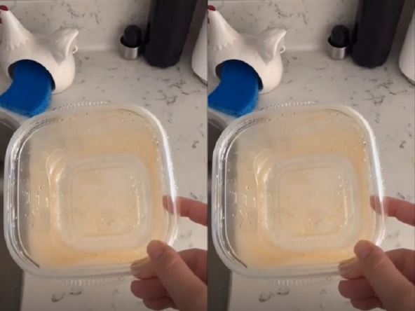 Odnosno, bilo je teško skinuti, a onda je jedna žena na TikTok-u otkrila sjajan trik. Sve što treba da uradite je da u plastičnu posudu sipate malo deterdženta za sudove, malo tople vode, komad ubrusa ili salvete. Zatim zatvorite posudi i mućkajte oko 40-50 sekundi, pa isperite i gotovo!