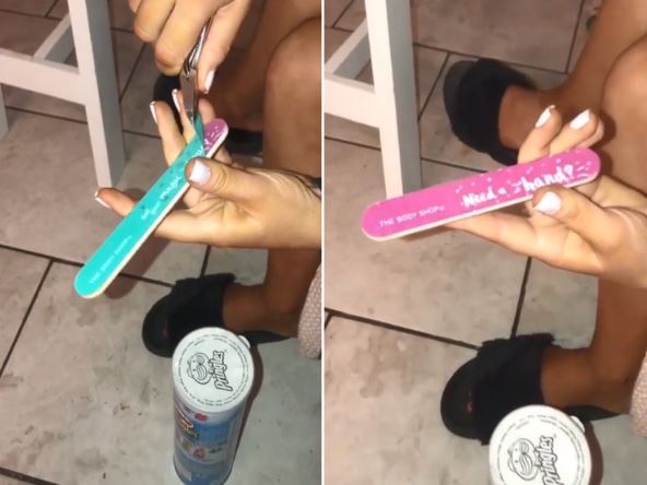 Stvar je u tome da se na snimku vidi devojka kako pincetom povlači gornji sloj svoje turpije za nokte, da bi ispod pokazala još jedan sloj, koji se takođe koristi za turpijanje noktiju!