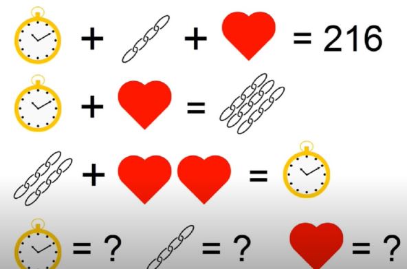 Čovek je kupio sat, ogrlicu i privezak za 216 dolara. Sat i privezak zajedno koštaju tri puta više od ogrlice, a ogrlica i privezak zajedno koštaju dvostruko manje od sata. Koliko košta sat, koliko ogrlica, a koliko privezak?