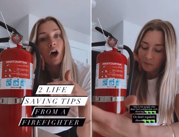 "Želim da vam pokažem dva trika koja sam naučila od supruga vatrogasca, a mogu da vam spasu život", počinje Ket u videu, zatim pokazuje na mali aparat za gašenje požara i nastavlja: "Uvek ga držimo ispod kreveta, u slučaju da izbije požar na spratu gde spavamo, kako bismo mogli da ga upotrebimo da dođemo do dečjih soba i izvedemo decu na bezbedno".