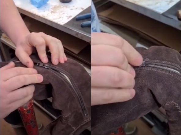 "Najpre stavite rajsferšlus na neku čvrstu podlogu", započeo je obućar priču u videu koji je objavljen na TikToku, a zatim je pojasnio da se posle izvesnog vremena, usled korišćenja, rajsferšlus previše "razradi", pa zupčanici ne upadaju jedan u drugi.