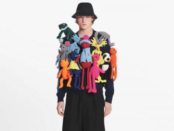Tako je i sa "Luj Viton" (Louis Vuitton) džemperom za ovu sezonu, prekrivenim štrikanim igračkama! Na najobičnijem crnom džemperu tako se nalazi čak 14 "stvorenja", među kojima su jastog, panda, žaba i druge životinje, kao i meda koji i sam nosi "Luj Viton" šal i kapicu.