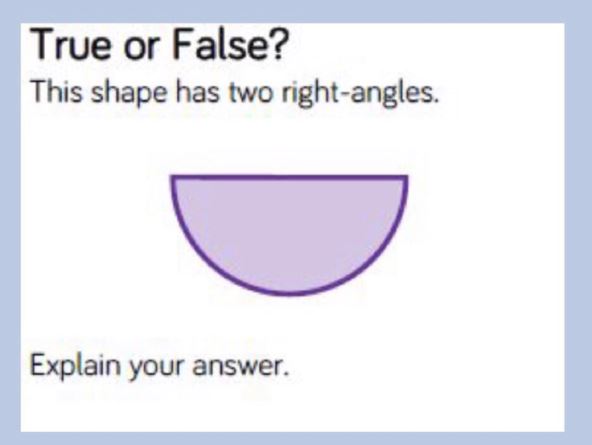 Na slici se vidi nacrtan polukrug, uz izjavu – „ovaj oblik ima dva prava ugla, tačno ili netačno? Objasnite svoj odgovor".