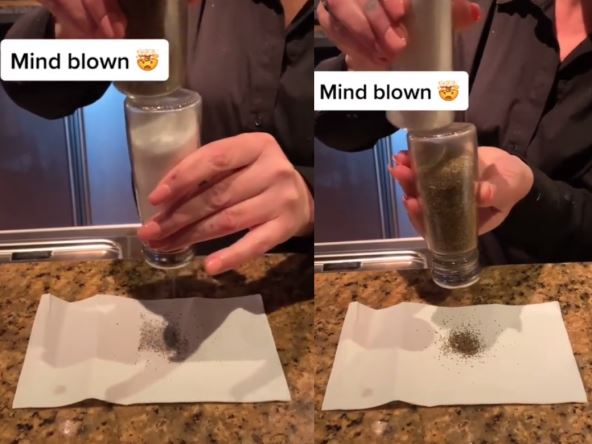 Konobarica je pokazala - ako su stakleni i imaju nabore po dnu, kao što većina njih ima, trebalo bi da jedan okrenete naopako, a naboranim rubom drugog da kružite po njemu i na jelo ćete istresti savršenu količinu začina!