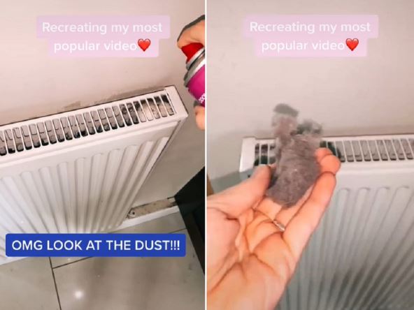 Naime, ona je pokazala u videu da koristi mirišljavi sprej za dezinfekciju kako bi očistila radijator, a čitav trik je u tome što pod pritiskom kojim se izbacuje sprej iz ambalaže, prašina ispada ispod radijatora.