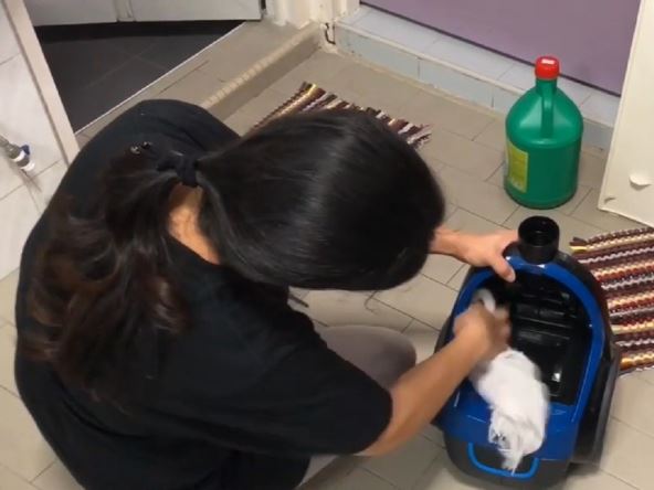Ona je pokazala da je napunila kadu vodom i u nju potopila crevo usisvača, a crna voda okolo dokaz je koliko se prljavštine krilo unutra.