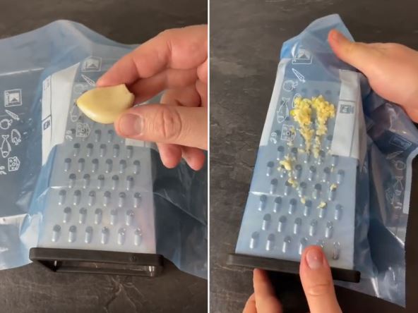 Zapravo, na rende je potrebno da stavite kesu od debljeg nalona, pa preko nje rendate beli luk.