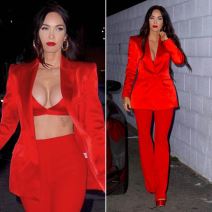 Svojim izborom haljine Megan je malo ostavila mašti, ali je osigurala sebi da se svi okrenu za njom. Provokativnu haljinu kombinovala je sa jednostavnim crnim sandalama brenda "Džimi Ču", a prilikom fotografisanja napravila je i nekoliko poza zbog kojih svi pričaju samo o njoj – dečka je uhvatila za međunožje, a zatim su oboje isplazili jezike i okrenuli se jedno ka drugom.