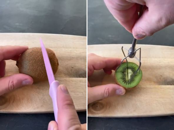 Ako ste tražili najbrži, najlakši i najuredniji način da očistite kivi, onda pogledajte ideju ovog tiktokera. Prvo što treba da uradite jeste da prepolovite kivi. Zatim, uzmite jednu mutilicu za mikser, zabodite je u voćku, samo okrenite i izvadite sadržaj napolje. Dobićete na komadiće isečen kivi, a kora će vam ostati u ruci. Bez kapanja i nereda, toliko jednostavno!
