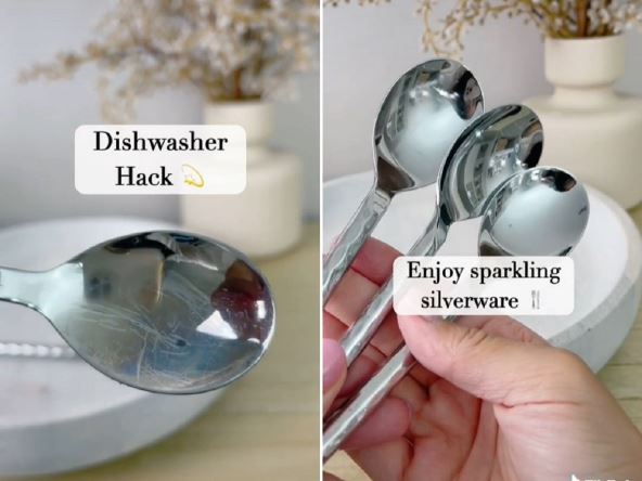 @carolina.mccauley This dishwasher hack will leave your silverware sparkling ✨ ##kitchenhacks##homehacks##dailyhacks##cleaningmotivation##hometips