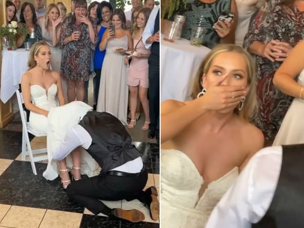 Na ovoj svadbi koja je postala viralna, ova tradicija je bila prekinuta i to pred svim gostima kojima je bilo potrebno nekoliko trenutaka da shvate da nešto nije u redu. Mlada je to shvatila tek kada je mladoženja zadigao venčanicu u bukvalno joj se zavukao pod suknju u nameri da skine podvezicu.