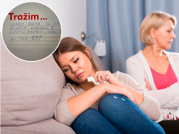 Takva situacija dozlogrdila je Sanji iz Splita, koja se odlučila na očajnički potez – u jednoj prodavnici u tržnom centru postavila je oglas ispisan rukom: "Tražim zeta da se rešim ćerke! Uslovi: nikakvi, samo da je vodi. Hitno!".