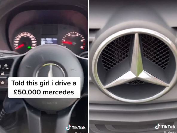 "Rekao sam devojci da vozim ’mercedes’ od 50.000 funti", počinje Ris priču u videu, za to vreme nam prikazujući logo ovog brenda. "Mislim da nije bila impresionirana kada sam se pojavio u ovome", kaže zatim, a onda pokazuje kamion, kojim otkriva da zapravo vozi "Tesko" kamion za dostavu.