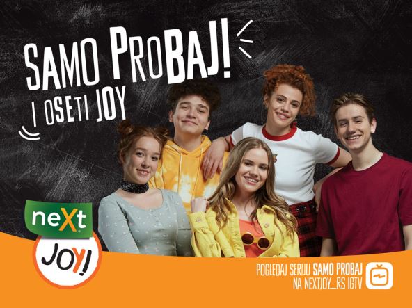 Prva neXt JOY IGTV serija „SAMO PROBAJ“, koju možete pogledati na Instagram nalogu nextjoy_rs, će vas držati u neizvesnosti kroz svih 5 epizoda. Prolazeći kroz razne tinejdžerske situacije, pet srednjoškolaca dele svoja osećanja, razmišljanja, strahove i pokazuju kako je neverovatno oslobađajuće kada prihvatiš sebe, svoje različitosti, pobediš nesigurnost i izađeš iz komfor zone. Zato SAMO PROBAJ i oseti JOY!