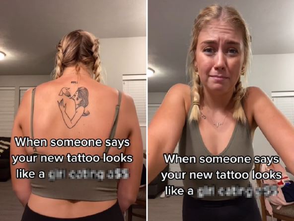 "Kada vam ljudi kažu da vaša nova tetovaža izgleda kao devojka koja liže du*e", napisala je ona u opisu video koji je objavila, a u kojem poručuje ljudima da je to "dobra, čak i sjajna šala, ali molim vas da prestanete".