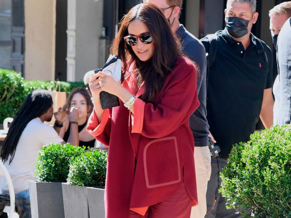 Nakon boravka u luksuznom hotelu, Megan i Hari su u školu došli džipom, okruženi obezbeđenjem, a ona je na sebi imala crveno odelo od kašmira, italijanskog brenda "Loro Piana", čiji sako košta skoro 5.000 evra, a pantalone još 1.400!
