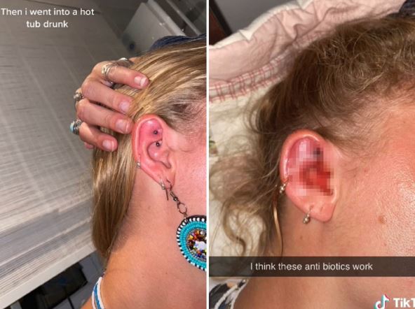 U videu koji je nazvala "moja noćna mora s pirsingom" otkrila je da je bila oduševljena kada je probušila uvo, a onda je pijana ušla u džakuzi i kaže da je odmah shvatila da je došlo do infekcije.