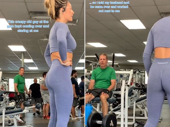"Ovaj jezivi starac stalno dolazi u teretanu i bulji u mene“, kaže u videu. I zaista se vidi stariji čovek u zelenoj majici koji ne skida pogled sa atraktivne plavuše. Kako je ona dalje objasnila, svog muža je obavestila o celom slučaju, rekla mu da joj je izuzetno neprijatno zbog muškarca koji je netremnice posmatra, na šta je on reagovao tako što je stao pored nje. Međutim, to čikicu nije sprečilo da "blene" u njeno zategnuto telo.