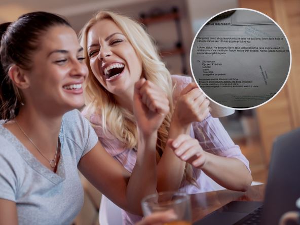 "Pacijentica dolazi zbog lacerokontuzne rane na dorzumu lijeve šake koju je zadobila danas oko 15 h kad je pao pršut na nju", uredno piše na izveštaju lekara, koji dalje opisuje nastalu povredu, a ispod su i njegove preporuke.