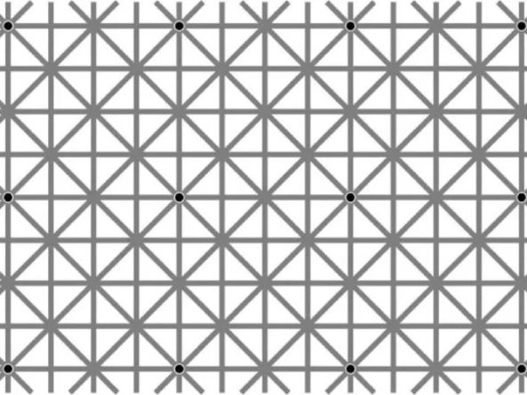 Na naizgled sasvim jednostavnoj slici koja se sastoji od ukrštenih vertikalnih, horizontalnih i dijagonalnih sivih linija, krije se i 12 crnih tačaka. Ove tačke nalaze se na spojevima linija, ali trik je u tome što ne možete da vidite svih 12 odjednom.