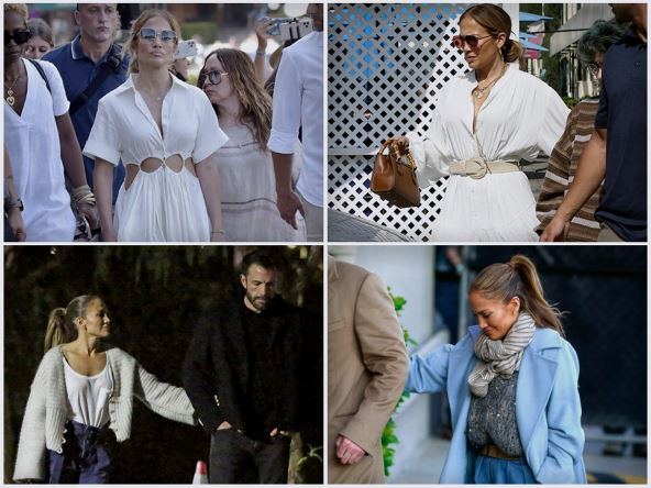 Džej Lo voli belu boju, što dokazuje i ovaj stajling - opet romantična bela haljina sa širokim pojasom, a uz nju čizme u stilu sedamdesetih i kožna tašnica.