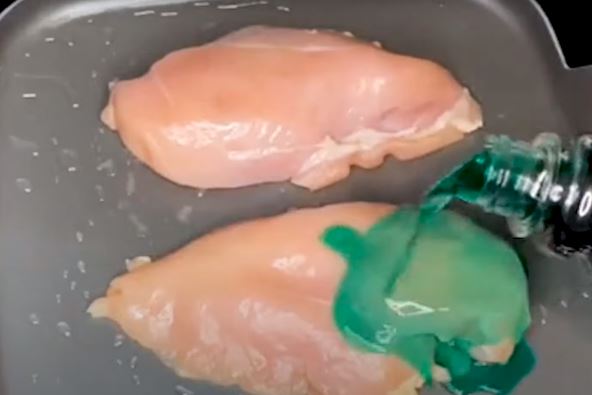 Najpre, budimo realni, ko bi jeo tirkiznu piletinu?! Odvratno izgleda već na prvi pogled! Korisnici TikToka, gde se pored korisnih saveta mogu naći i prave budalaštine, pileći file polivaju sirupom protiv prehlade i onda prže ili dinstaju. Gotovo meso izgleda grozno, povuklo je veštačku boju iz sirupa i puno je hemikalija!