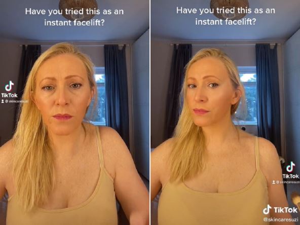 Zatezanje lica šminkom Izvor: tiktok/skincaresuzi