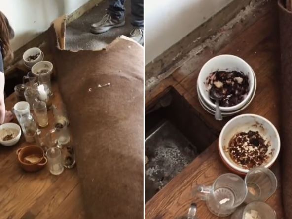 Ona je na TikTok-u podelila kratki video u kom se može videti kako podiže tepih i ispod parketa pronalazi otvor. Saginje se i stavlja ruku unutra, a onda iz otvora vadi prljavo posuđe sa ostacima stare hrane.