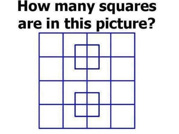 Ovu ilustraciju je na sajtu Playbuzz podelio jedan korisnik i to je bilo dovoljno da nastane lom! Na prvi pogled, svako vidi broj pojedinačnih kvadrata i dva dodatna u sredini, ali kada se skoncentrišete, videćete da ih ima mnogo više...