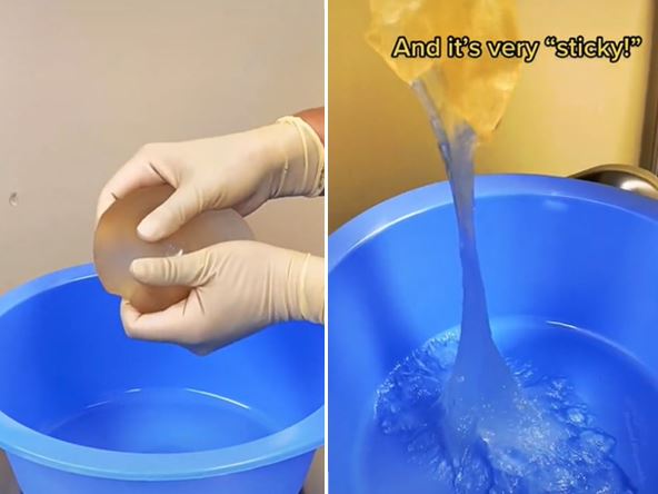 Na početku snimka vidi se kako doktor drži u rukama, na prvi pogled, čitav implantant koji je bio u nečijim grudima. Međutim, kada je počeo da ga kida rukama iz njega je izašla "bajata" i ljigava smesa, nalik na gel.