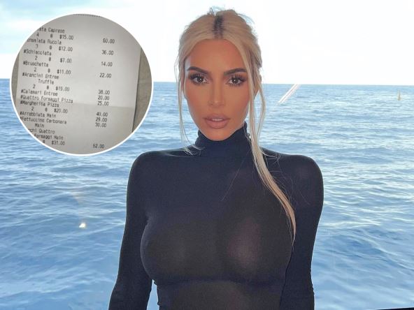 Na računu se vidi da je Kim naručila tri salate od rukole, dve pize, jednu sa četiri vrste sira, lignje, dva riblja jela, pastu karbonare, njoke sa sirom, lazanje, teletinu i picu sa nutelom. I sam konobar se našalio da je Kim na dobroj dijeti.