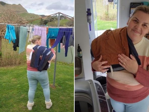 U video snimku koji je objavila na svom TikTok nalogu pokazala je kako prvo slaže mokre stvari jednu na drugu, a zatim tako dobijenu gomilu mokre odeće stavlja na rame. Potom tako, sa raena i u stojećem položaju, kači odeću na štrik. Nema saginjanja i ustajanja, sve bude brzo za čas!