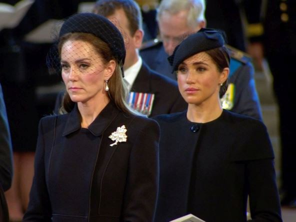 I ovoga puta, britanska javnost se pozabavila detaljima koje su nosile kraljičine snajke. Dok je Kejt Midlton izgledala prilično zamišljeno, Megan Markl je nekoliko puta spuštala pogled i gledala u pod. Na verskoj službi u Vestminster Holu u čast pokojne kraljice Elizabete II, Kejt se nije odvajala od svog supruga, a mnogi su ubeđeni da se Megan osećala veoma neprijatno.