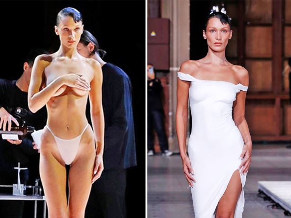 Manekenka koja nosi titulu najlepše žene na svetu, Bela Hadid, izazvala je šok na reviji u Parizu kada je na pistu zakoračila samo u gaćicama. Lepotica je u minijaturnom donjem vešu lagano šetala pokazujući izvajano telo, a onda se desio obrt! Dvojica muškaraca, odnosno kreatori, prišli su joj sa rasprišivačem boja i počeli da je prskaju belom kreirajući haljinu na njoj.