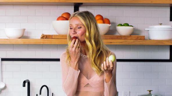 Oskarovka koja "čudnim" proizvodima za poboljšanje seksa (a koje prodaje preko svoje firme za onlajn prodaju "Goop") i raznim skandaloznim izjavama o prvim intimnim iskustvima, najčešće izaziva kritike javnosti, u prilogu koji je urađen za magazin "Vogue" pojavila u kreaciji koja košta nekoliko hiljada dolara. Puder roze komplet - suknja i prozirni top s potpisom čuvenog brenda Guči izgledaju fantastično, ali ne i za kuhinju. Međutim, to je nije omelo da se lati kuvanja i pripremi fritatu sa spanaćem, omiljeno jelo koji naziva "doručkom za dečka".