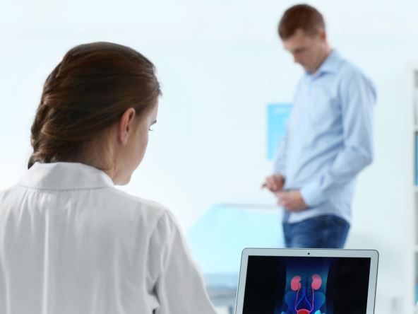 Sam pregled kod urologa počinje ispipavanjem stomaka čoveka, ne bi li se utvrdilo da li postoji određena bolna tačka ili uvećanje organa u njegovom trbuhu. Zatim, ukoliko lekar smatra da je to potrebno, radi ultrazvučni pregled gornjeg abdomena, karlice i testisa.