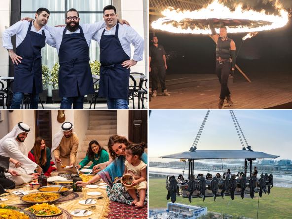 E, ovo ne smete da propustite! Sa jedne strane ćete videti najveći panoramski točak, sa druge poluostrvo u obliku palme, na trećoj nebodere koji su simbol Dubaija. Sve u svemu, iskustvo je fantastično. Situacija je sledeća - vi sedate za sto na koji su već "ukrcani” kuvar i konobari, a nakon što budete obezbeđeni sigurnosnim pojasom, kran vas diže na preko 40 metara visine. Ješćete na nebu, hranu koja se priprema pred vašim očima i veoma je ukusna, a o pogledu koji ćete imati ne treba trošiti reči.