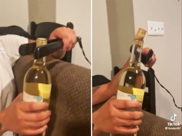Verovatno suočena sa istim izazovom, jedna tiktokerka i majka troje dece, odlučila je da olakša život svojim "sapatnicama". Na ovoj mreži je podelila genijalan trik za otvaranje flaša sa papmpurom od plute. Umesto vadičepa, ona koristi aparat koji ima 90 odsto žena - presu za kosu!