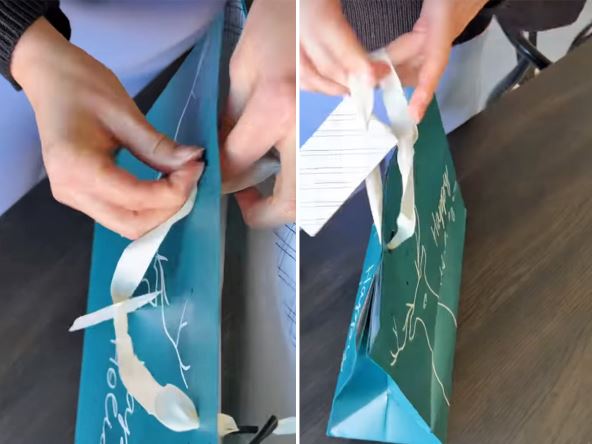 To podrazumeva da kraj ručke uvučete u rupu na suprotnoj strani kese i isto to učinite sa drugom stranom. Kada ih povučete čvrsto, kesa se zatvara tako da poklon ne može da se vidi. Ovaj snimak pregledalo je neverovatnih 17 miliona ljudi, koji su ideju pohvalili u komentarima.