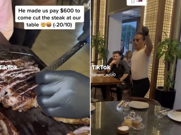 Na snimku koji je objavila nezadovoljna mušterija može da se vidi kako je poznati kuvar prišao stolu da bi isekao odrezak, a to zadovoljstvo je koštalo dodatnih 600 dolara.