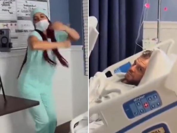 Sestra pleše uz bolesnog pacijenta Izvor: Twitter/@BornAKang