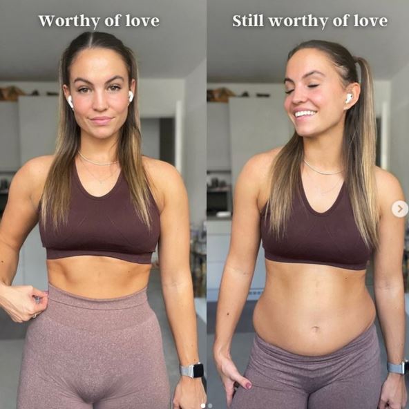 "Oba ova tela sam ja, i ona su lepa, jaka, vredna i zaslužuju ljubav. Nije sve u odeći, poziranju i savršenom osvetljenju. Niko ne živi svoj život naprežući trbušnjake", napisala je ona.