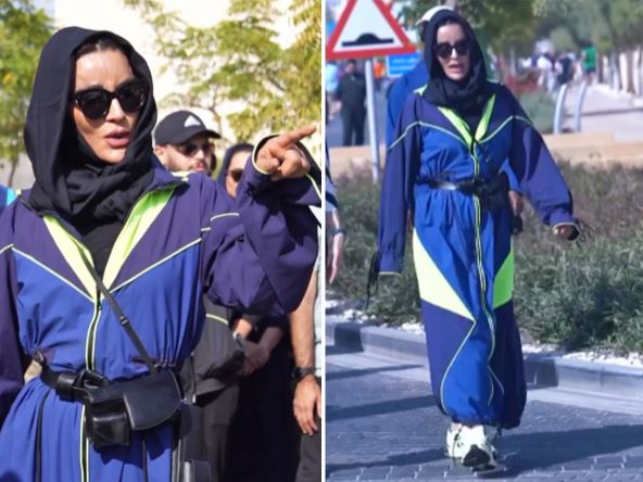 Ona se na šetnji Katarske fondacije solidarnosti za pomoć žrtvama zemljotresa u Turskoj i Siriji pojavila u nesvakidašnjoj i veoma modernoj abaji ( vrsta ogrtača koji se nosi u arapskom svetu), dok je štikle zamenila fluroscentnim patikama. Kako je navela na svom Instagram profilu, ovu abaju dizajnirao student modnog dizajna "VCUarts Qatar" Nur Rašid But, koristeći tkaninu koja je obrađena nanotehnologijom.