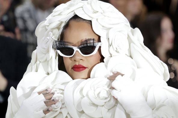 Došla je poslednja, u stilu velike zvezde i priredila perfromans. Rijana se opredelila za predimenzionirani beli ogrtač čiji je gornji deo imao ogromne ruže. Skoro potpuno je prekrila lice, a niko nije propustio neobičan model naočara. Efektni beli okvir sa dugačkim trepavicama bio je jasan podsetnik da Riri nikada ne odstupa od svog urbanog stila.