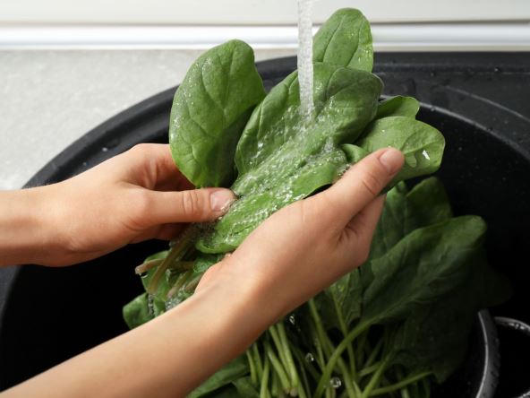 Uklonite oštećene ili sluzave delove i povrće pažljivo isperite hladnom vodom. Za uklanjanje ostataka zemlje najbolje je da lisnato povrće potopite u hladnu vodu na nekoliko minuta. Prema američkoj agenciji odgovornoj za zaštitu javnog zdravlja kroz kontrolu i nadzor sigurnosti hrane, nije potrebno da koristite sapun ili posebna sredstva za pranje.